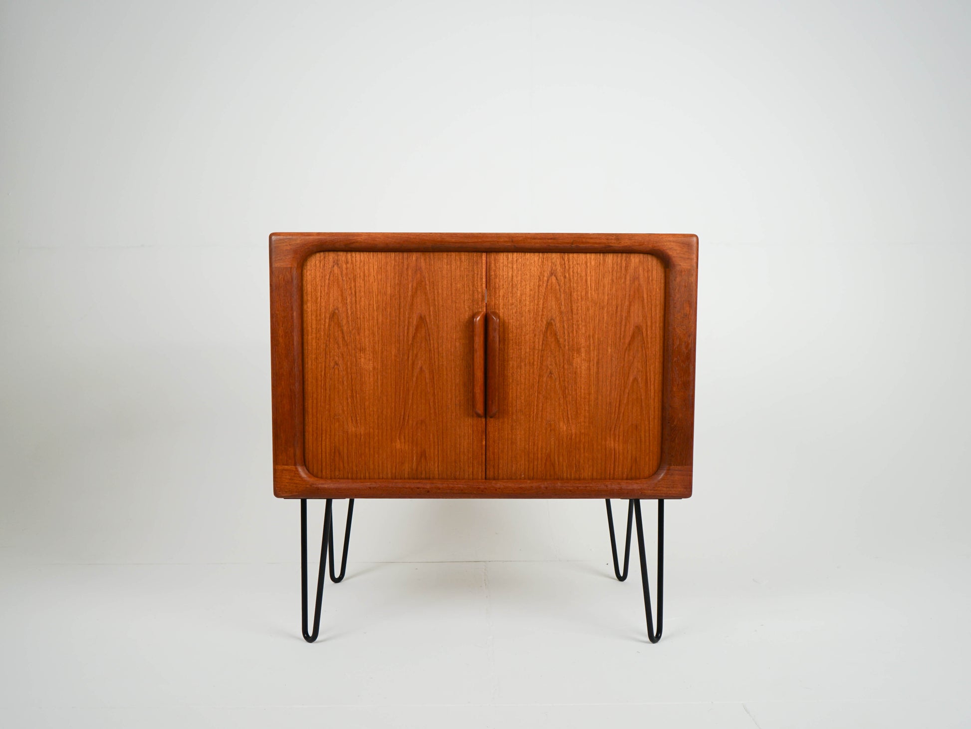 Zum Verkauf steht ein wunderschönes dänisches Teak Sideboard mit einem Einlegeboden und zwei Jalousietüren in einem traumhaften Vintage Zustand.